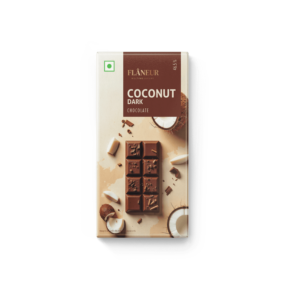 Indulge in a tropical expression of dark chocolate with Flaneur Coconut Dark Chocolate where intense cocoa meets the gentle sweetness of coconut.